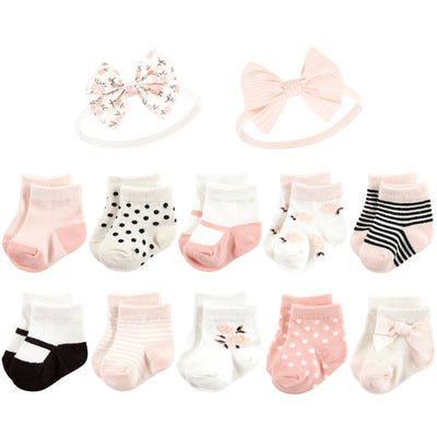 Hudson Baby Sock and Headband 12pc Set, Soft Pink Roses