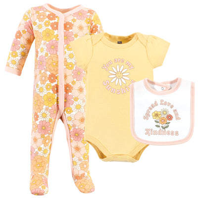Hudson Baby Cotton Sleep and Play, Bodysuit and Bandana Bib Set, Little Love Flowers