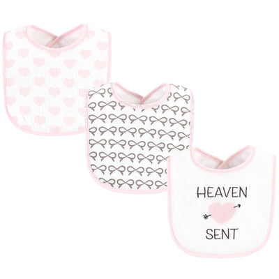 Hudson Baby Cotton Terry Drooler Bibs with Fiber Filling, Heaven Sent Heart Arrow