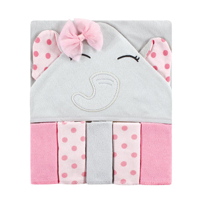 Hudson Baby Hooded Towel and Five Washcloths, Pink Dots Pretty Elephant