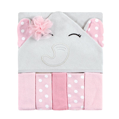 Hudson Baby Hooded Towel and Five Washcloths, Pink Elephant