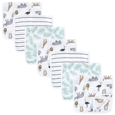 Hudson Baby Muslin Burp Cloth 7pk, Modern Neutral Safari