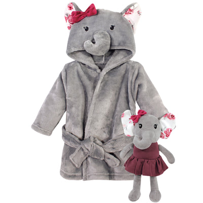 Hudson Baby Plush Bathrobe and Toy Set, Gray Rose Elephant