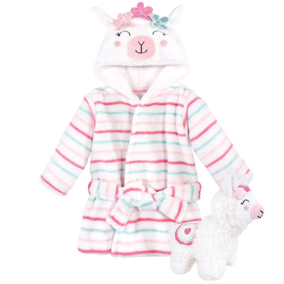 Hudson Baby Plush Bathrobe and Toy Set, Flower Llama