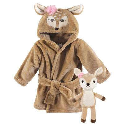 Hudson Baby Plush Bathrobe and Toy Set, Fawn