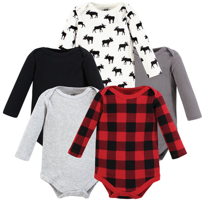 Hudson Baby Thermal Long Sleeve Bodysuits, Buffalo Plaid Moose