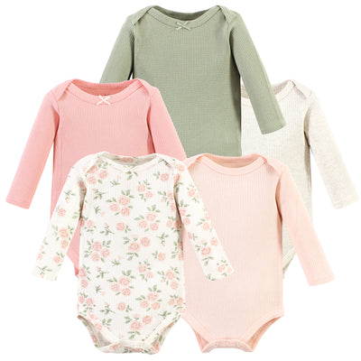 Hudson Baby Thermal Long Sleeve Bodysuits, Soft Pink Sage Rose