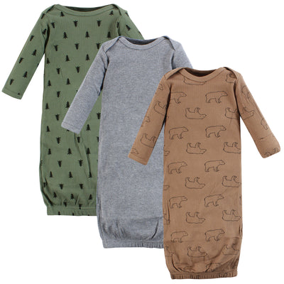 Hudson Baby Thermal Gown 3pk, Bear Tree