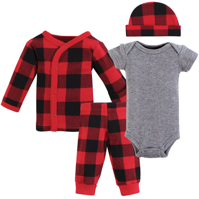 Hudson Baby Thermal Preemie Layette Set 4pc, Buffalo Plaid Short Sleeve