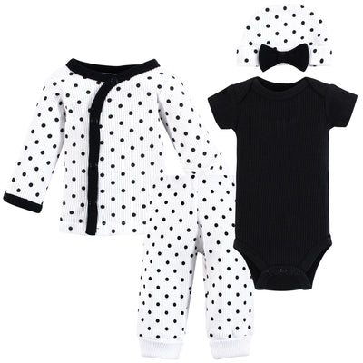 Hudson Baby Thermal Preemie Layette Set 4pc, Black White Dots Long Sleeve