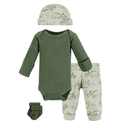 Hudson Baby Thermal Preemie Layette Set 4pc, Sage Dinosaur Long Sleeve