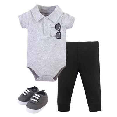 Little Treasure Cotton Bodysuit, Pant and Shoe Set, Sunglasses Collar