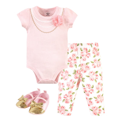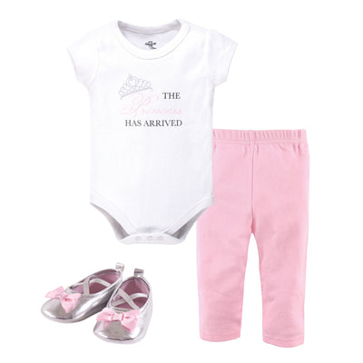 Little Treasure Cotton Bodysuit, Pant and Shoe Set, Pretty Princess