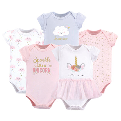 Little Treasure Cotton Bodysuits, Unicorn Short-Sleeve