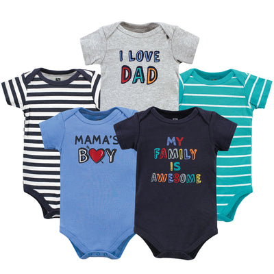 Hudson Baby Cotton Bodysuits, Brown Navy Mamas Boy 5-Pack