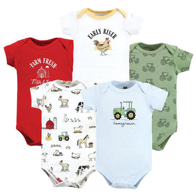 Hudson Baby Cotton Bodysuits, Boy Farm