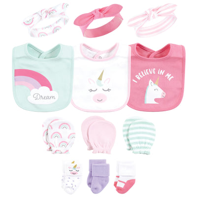 Hudson Baby Caps or Headbands, Bibs, Mittens and Socks 12pc Set, Unicorn