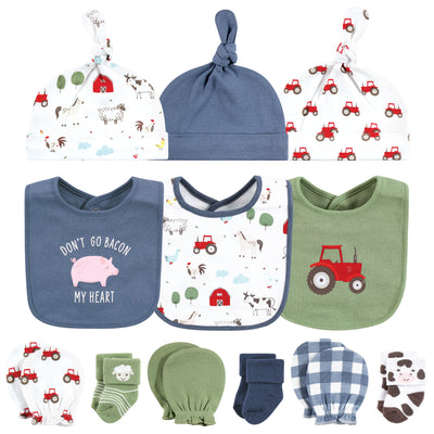 Hudson Baby Caps or Headbands, Bibs, Mittens and Socks 12pc Set, Farm