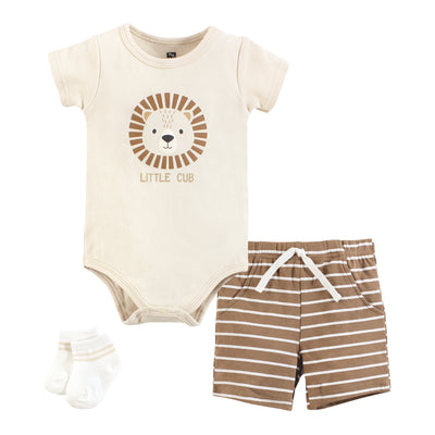 Hudson Baby Bodysuit, Short and Sock, Brave Lion