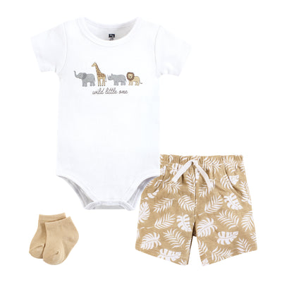 Hudson Baby Bodysuit, Short and Sock, Wild Little One