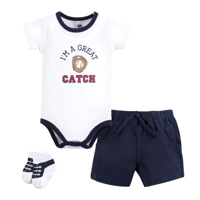 Hudson Baby Bodysuit, Short and Sock, Great Catch Baseball