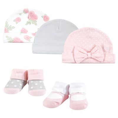 Hudson Baby Caps or Headbands, Bibs, Mittens and Socks 12pc Set, Pink Woodland