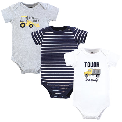Hudson Baby Cotton Bodysuits, Construction 3-Pack
