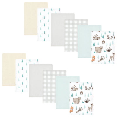 Hudson Baby Cotton Flannel Burp Cloths Bundle, Neutral Woodland Pals