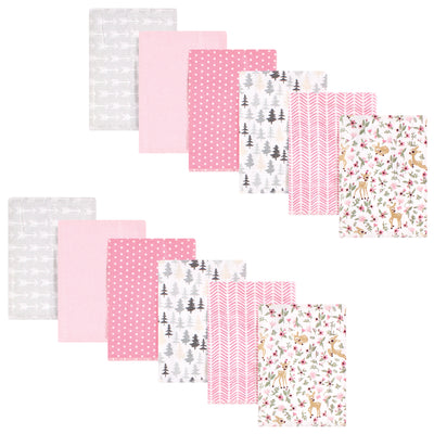 Hudson Baby Cotton Flannel Burp Cloths Bundle, Girl Woodland