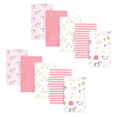 Hudson Baby Cotton Flannel Burp Cloths, Farm Friends Pink 10-Pack