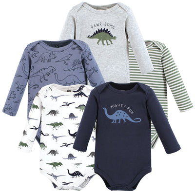 Hudson Baby Cotton Long-Sleeve Bodysuits, Blue Green Dino