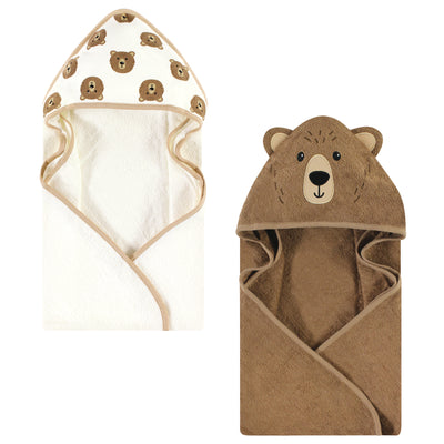 Hudson Baby Cotton Animal Face Hooded Towel, Brown Bear 2-Pack