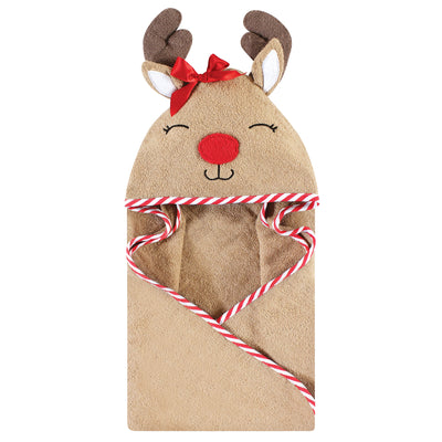 Hudson Baby Cotton Animal Face Hooded Towel, Girl Holiday Reindeer