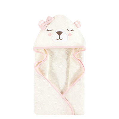 Hudson Baby Cotton Animal Face Hooded Towel, Gingham Bear Girl