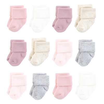 Hudson Baby Cotton Rich Newborn and Terry Socks, Mauve Neutral