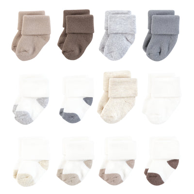 Hudson Baby Cotton Rich Newborn and Terry Socks, Neutral Woodland