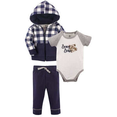 Yoga Sprout Cotton Hoodie, Bodysuit or Tee Top, and Pant, Bear Hugs Baby