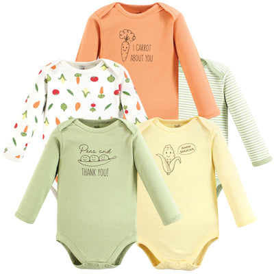 Touched by Nature Organic Cotton Long-Sleeve Bodysuits, Peas And Thank You